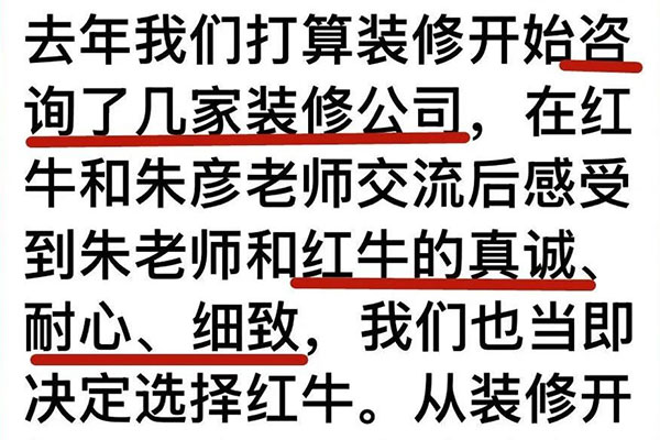 來自業(yè)主的超長評價:始于信任,忠于品質(zhì),見證南京紅牛裝飾口碑的力量!